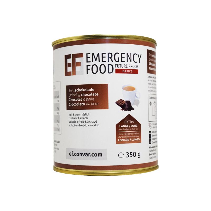 Przechowywać w suchym i chłodnym miejscu. Na puszce znajdują się wszystkie instrukcje przygotowania, aby ułatwić Ci życie. Niezależnie od tego, czy chodzi o sytuację niedoboru, powódź, czy po prostu codzienne życie – delektuj się pysznymi filiżankami gorącej czekolady.