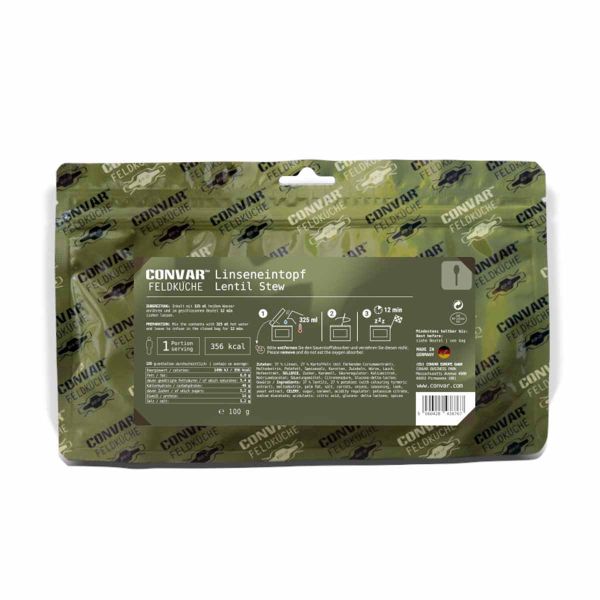 Gulasz z soczewicy CONVAR to pożywne i kojące danie instant, przygotowane z soczewicy i starannie wyselekcjonowanych składników. Bogaty w smak i energię, stanowi kompletny posiłek szczególnie odpowiedni do wsparcia wysiłku fizycznego i utrzymania samodzielności żywieniowej w wymagających warunkach.